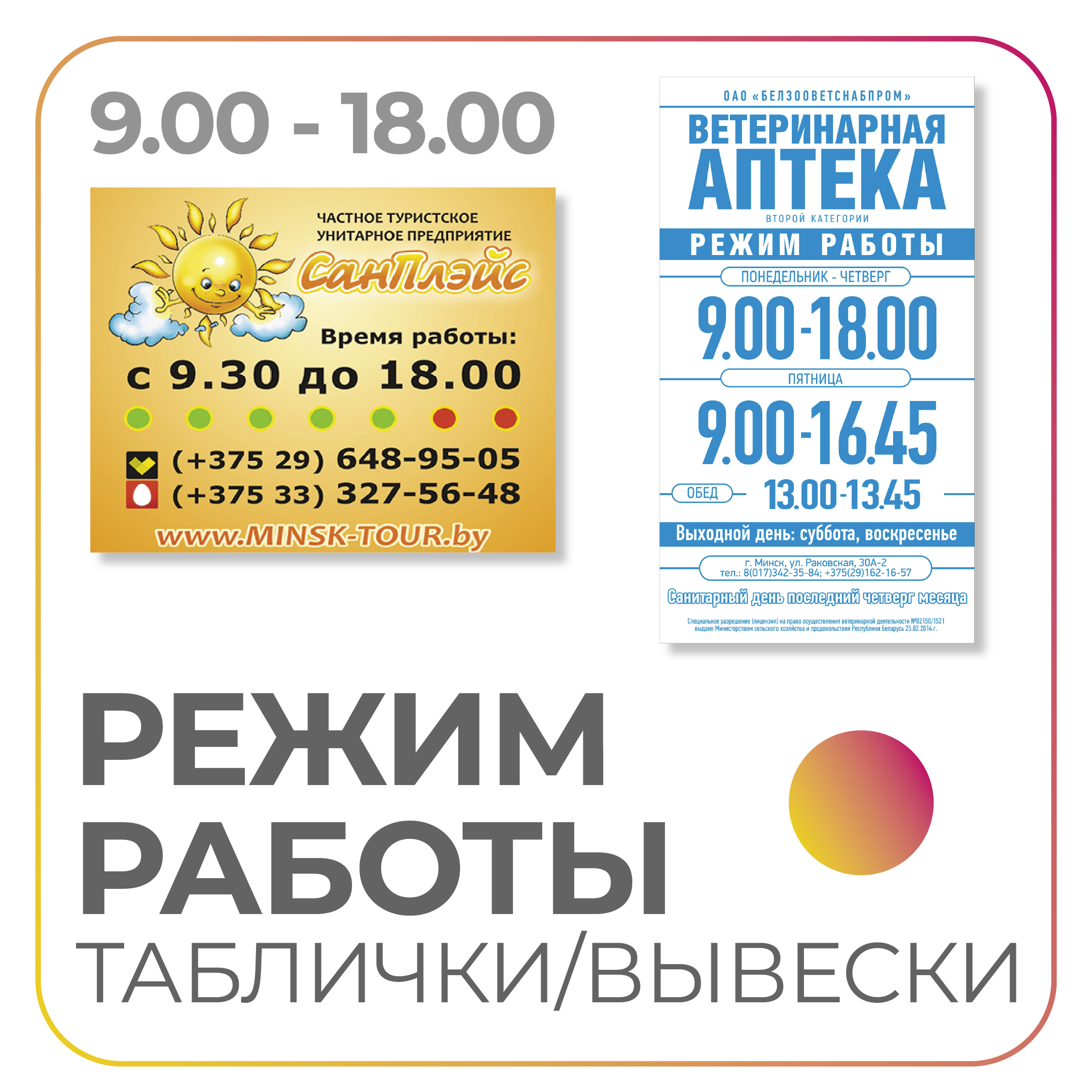 Особое внимание уделяем долговечности. Ламинация и защитные покрытия позволяют табличкам не выцветать и не бояться влажной уборки. Для организаций с режимом работы мы предлагаем удобные варианты со сдвижными окошками или карманами для сменного графика.